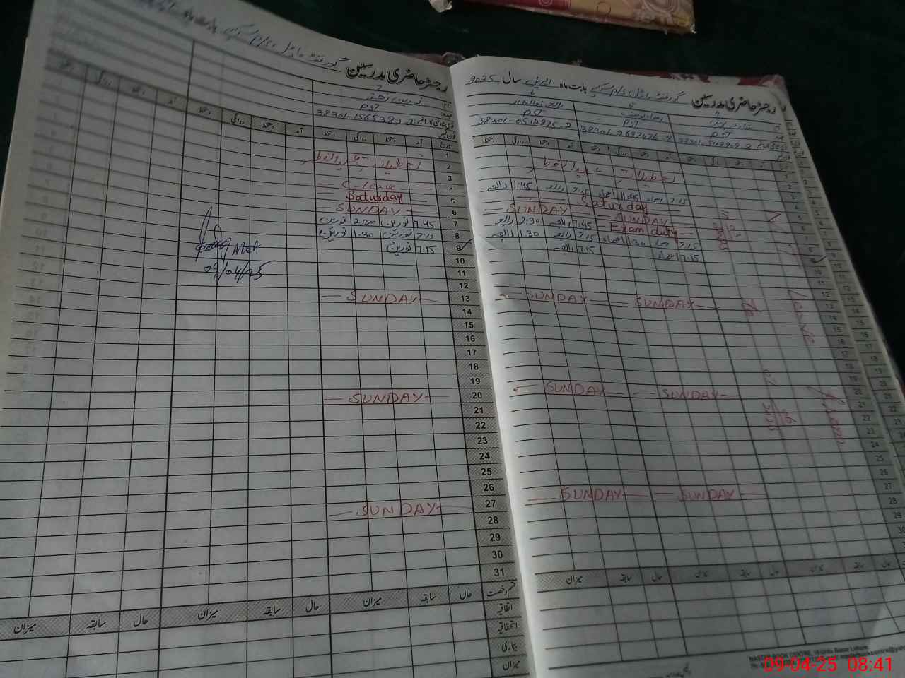 | CNIC | Full Name | Designation | R/C | Absence During Last Calender Month |