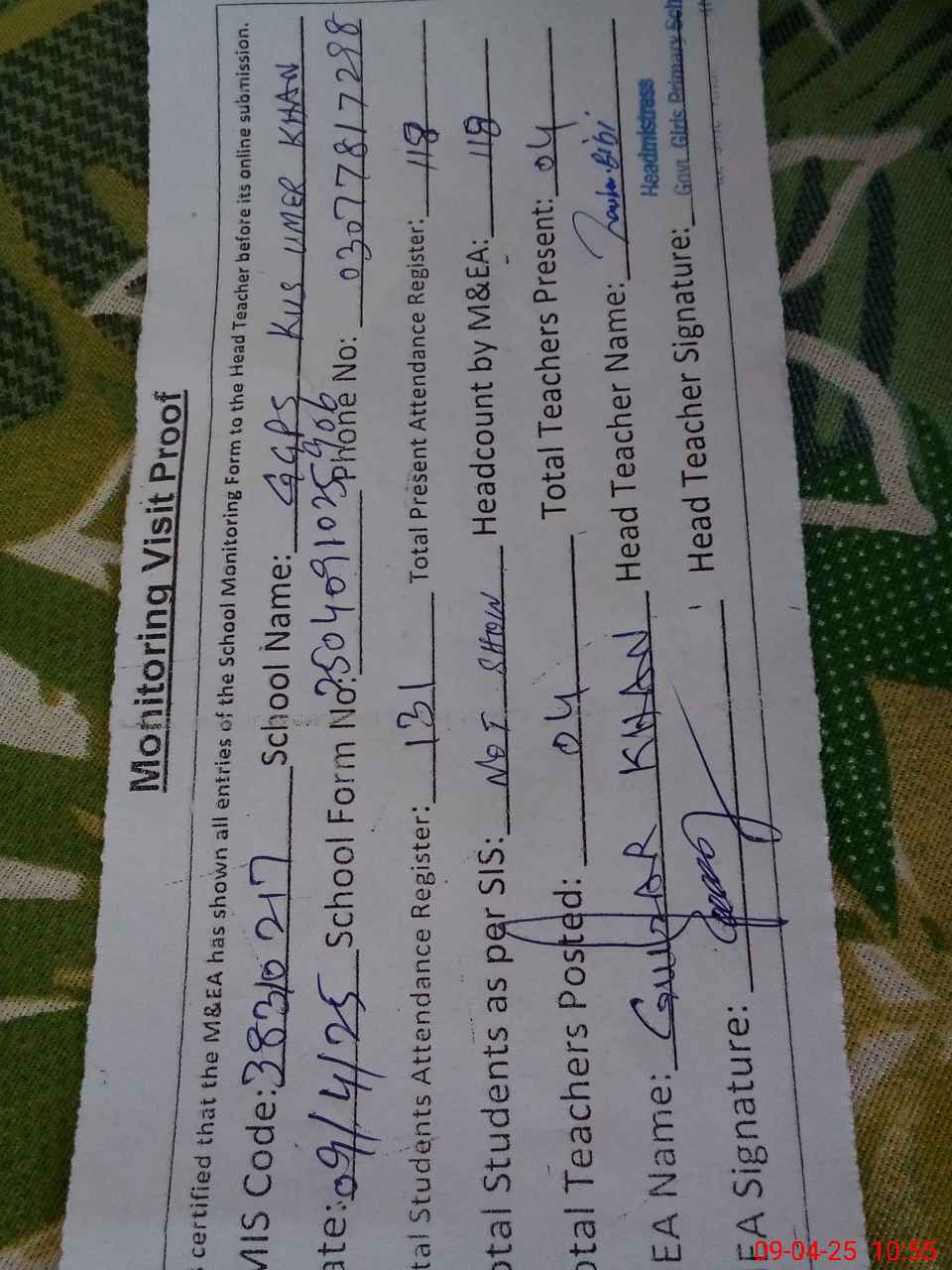 | EMIS Code: 38310217 | Name of School: GGPS KUS UMER KHEL | |||
