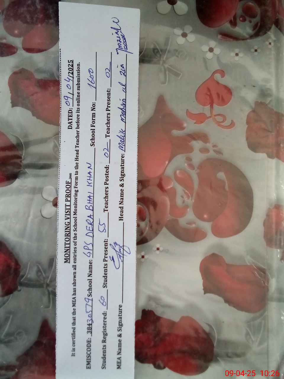 | EMIS Code: 38430579 | Name of School: GPS DERA BHAI KHAN | |||