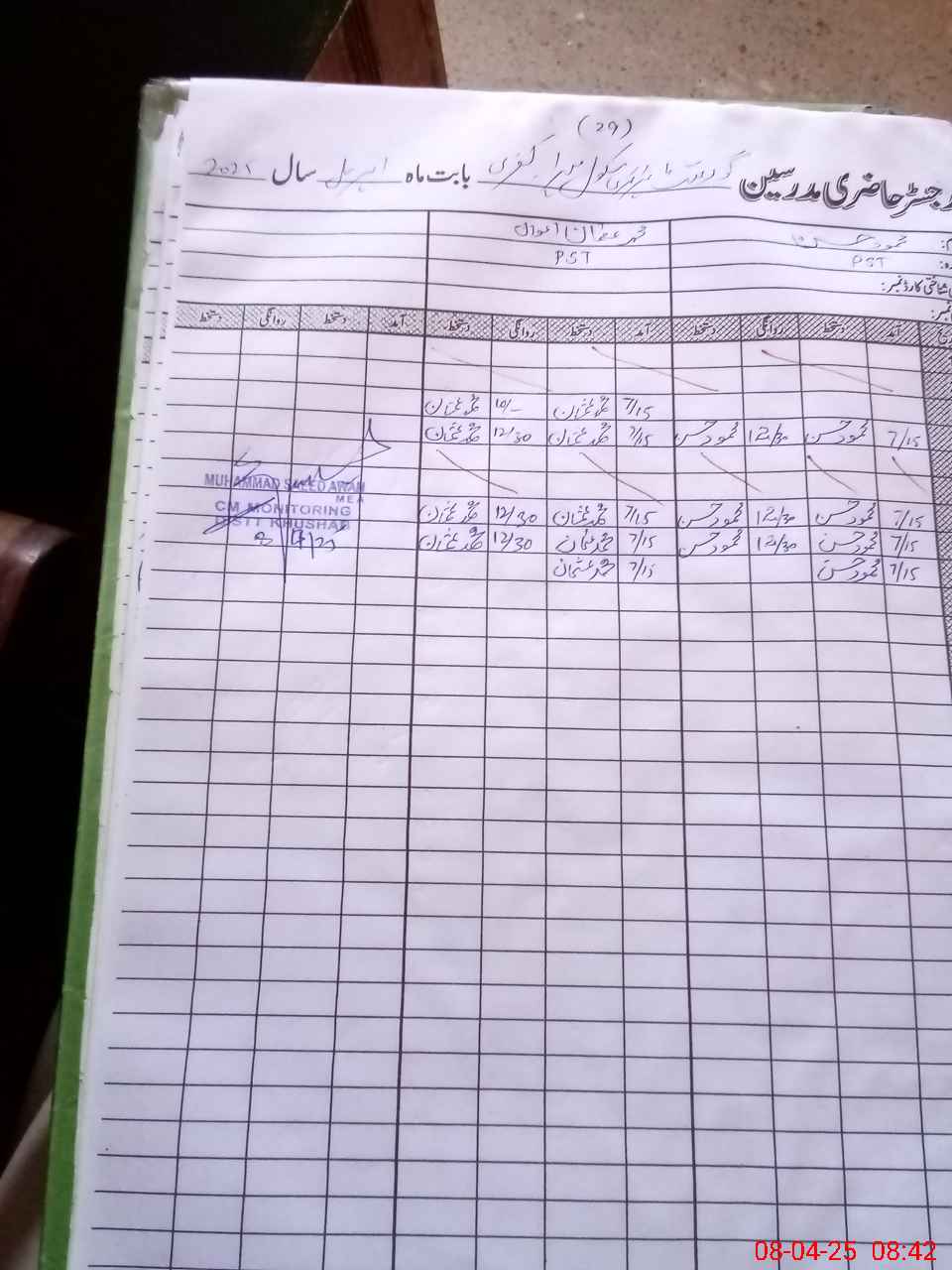 | Name: Mu**** Ar**** Designation: (School Headmaster's/Headmistress's) PST Phone/Cell Number: 03**** |