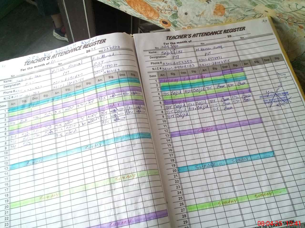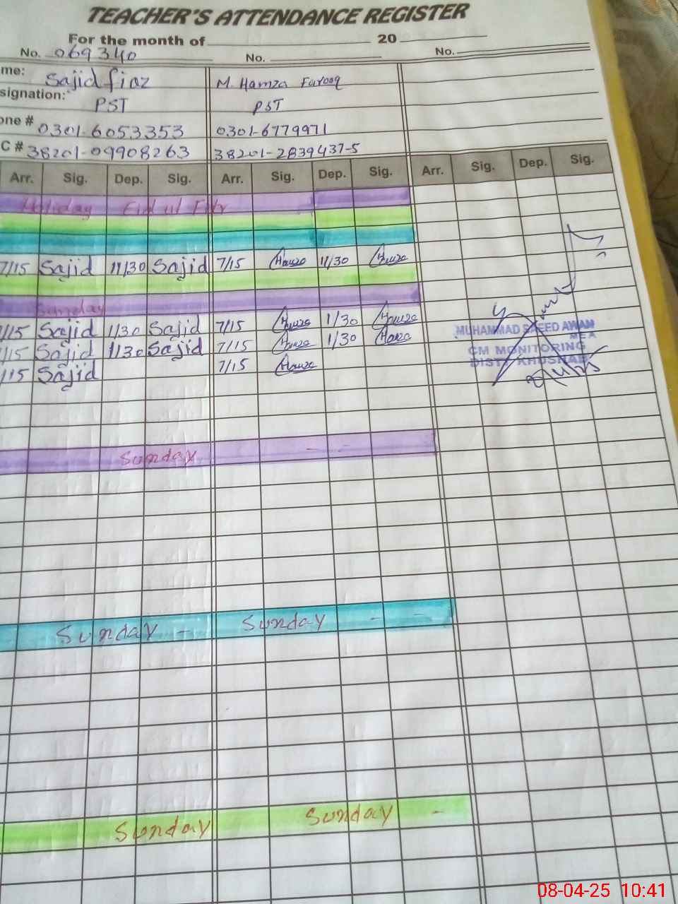 | Name: Ha**** Su**** Designation: (School Headmaster's/Headmistress's) PST Phone/Cell Number: 03**** |