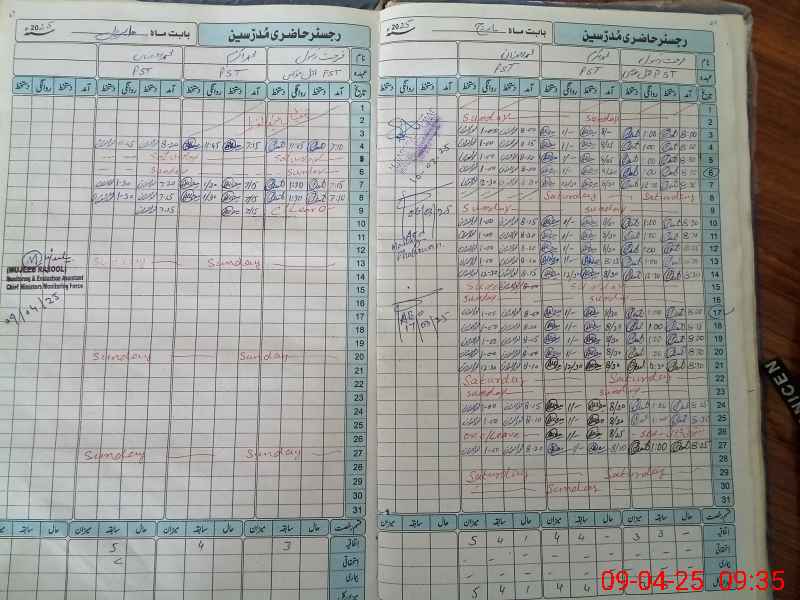 | Remarks (Use Separate Page if Required): During visit found teacher Farhat Rasool was not present in school and no sanctioned document available | |||||