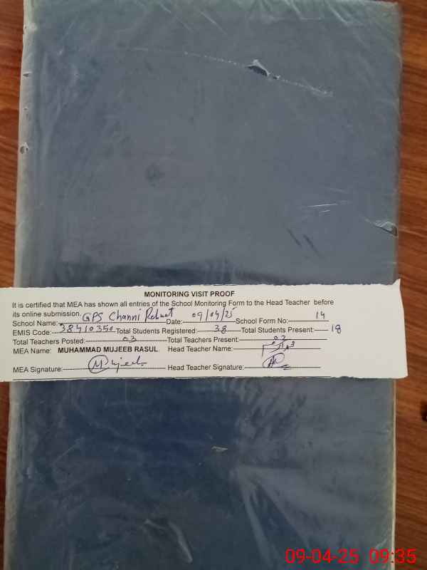 | EMIS Code: 38410350 | Name of School: GPS CHHANI RAHMAT KHAN | |||