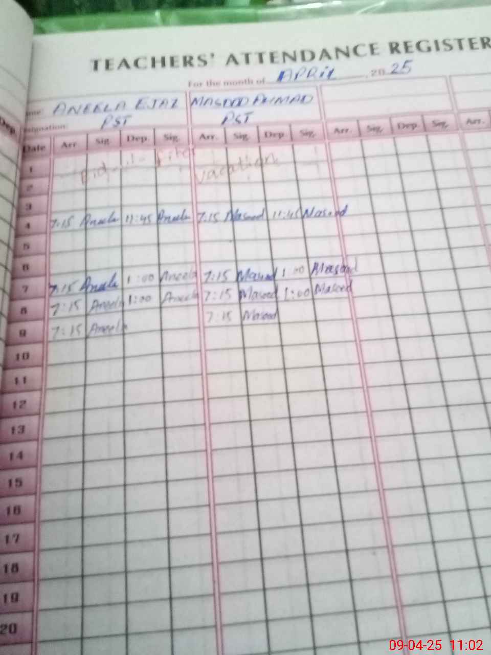 | Name: AN**** IJ**** Designation: (School Headmaster's/Headmistress's) PST Phone/Cell Number: 03**** |