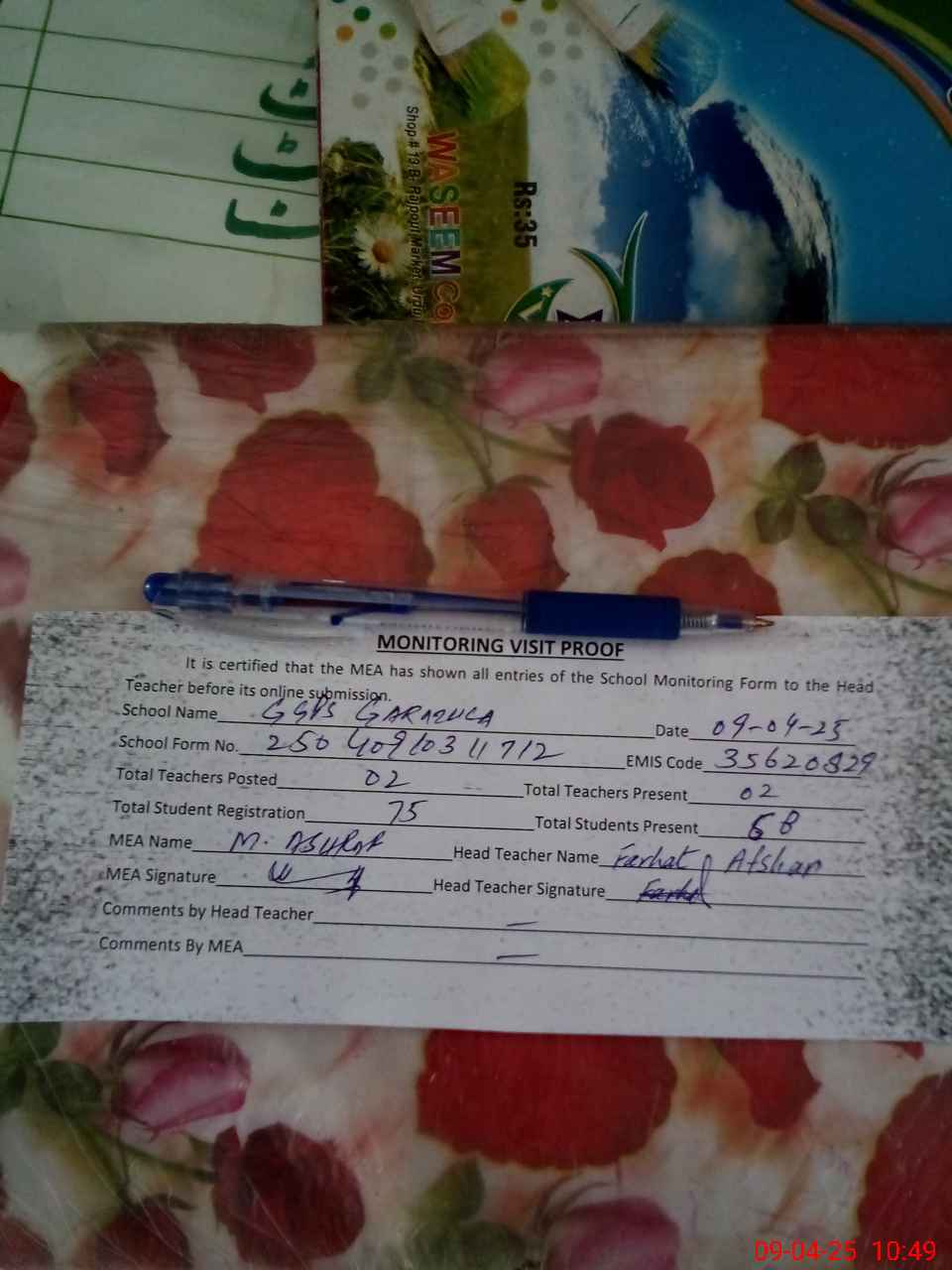 | EMIS Code: 35620829 | Name of School: GGPS GARMULA CHAK NO. 169 | |||