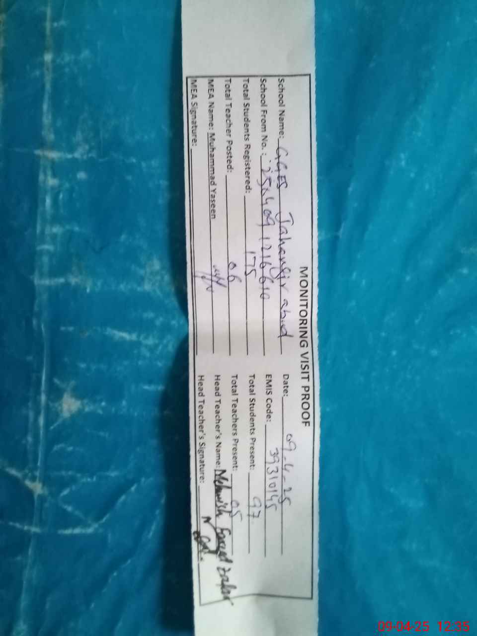 | EMIS Code: 39310145 | Name of School: GGES JAHNGIR ABAD | |||