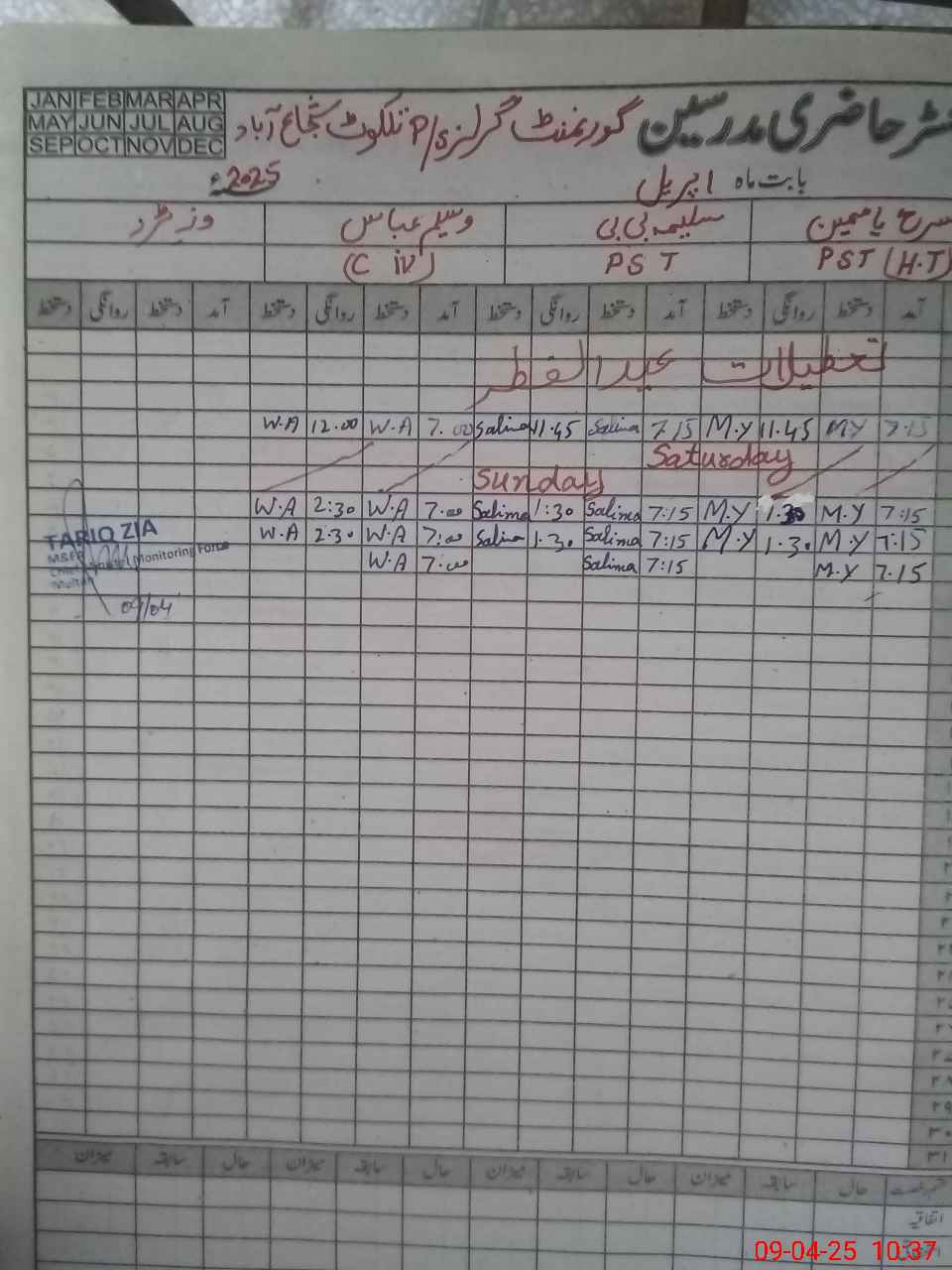 | Monitoring Date: 09-04-2025 | Start Time: 09-04-2025 10:29 AM | End Time: 09-04-2025 11:08 AM | Name of MEA: Mu**** Ta**** Zi**** | |