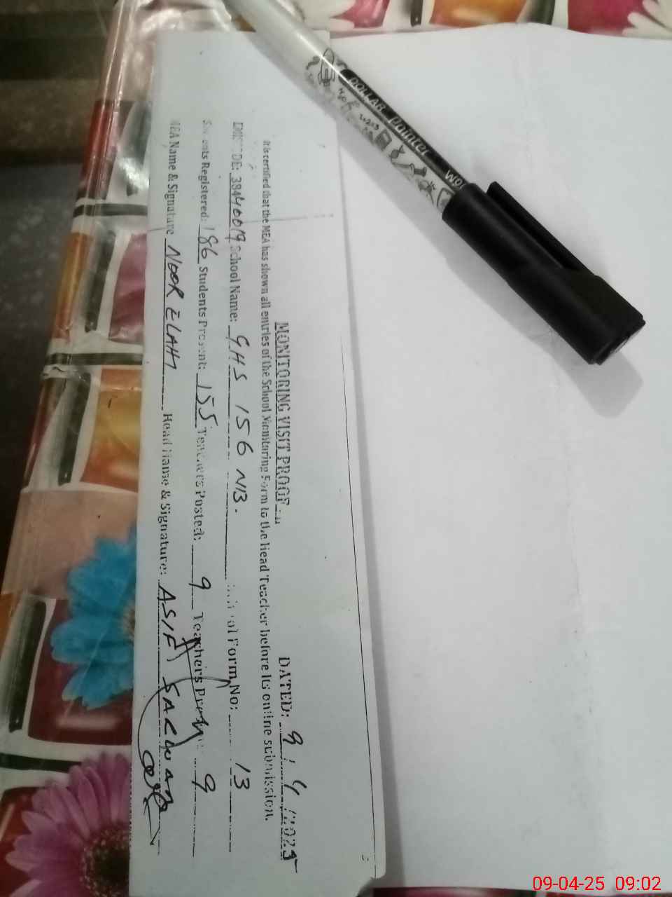 | Attendance Register | Head Teacher | MEA with School | Visit Proof |