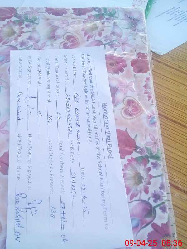 | Certified that this School was Inspected by the Undersigned MEA/DMO Today and the Information Stated Above is as Per Record. | |||||