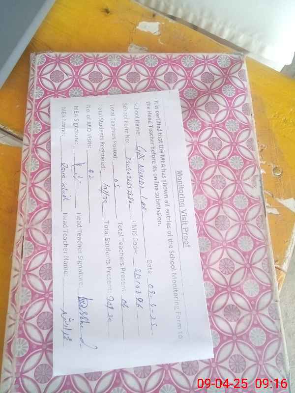 | Certified that this School was Inspected by the Undersigned MEA/DMO Today and the Information Stated Above is as Per Record. | |||||