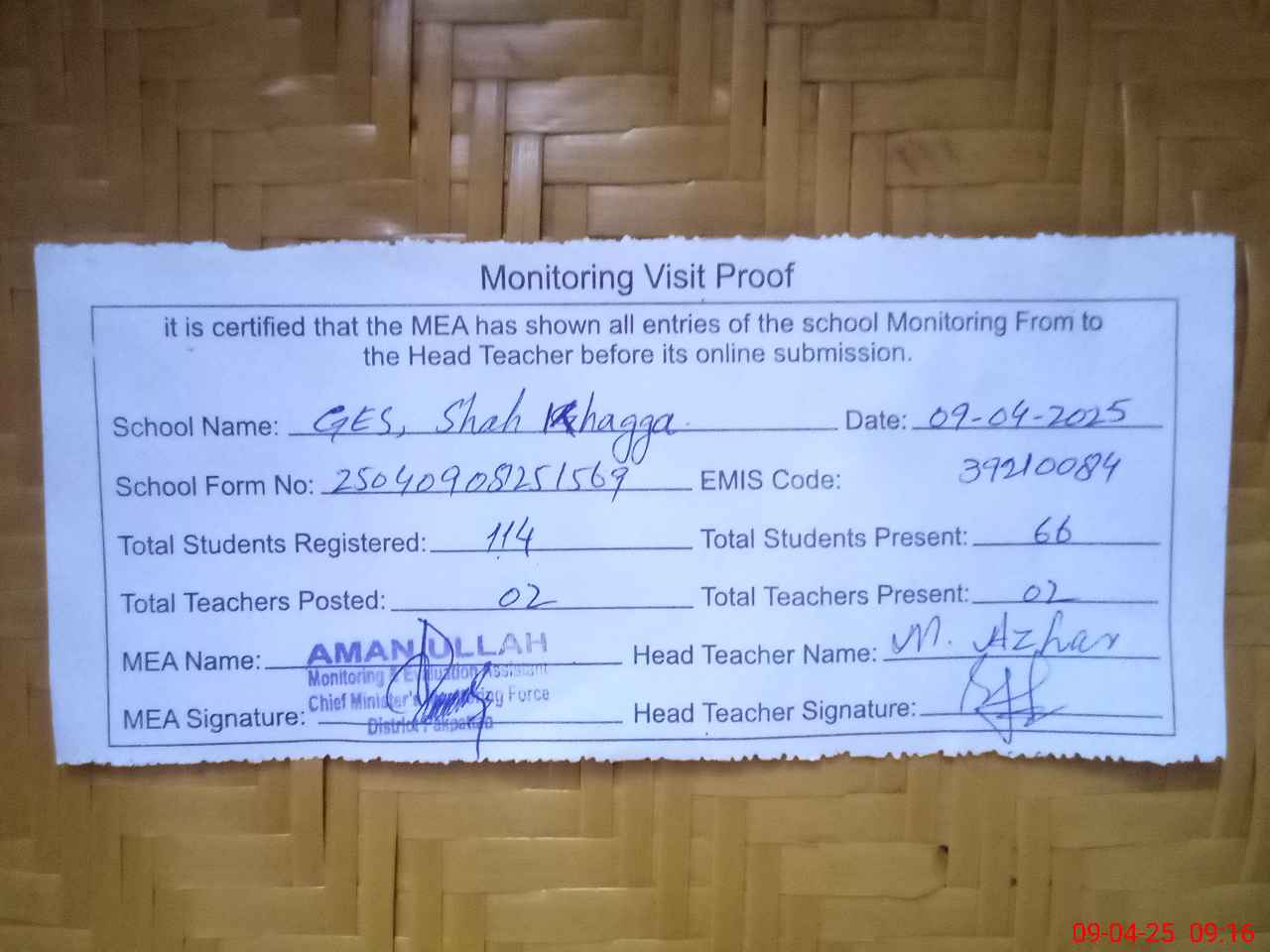 | EMIS Code: 39210048 | Name of School: GES SHAH KHAGGA PAKPATTAN | |||