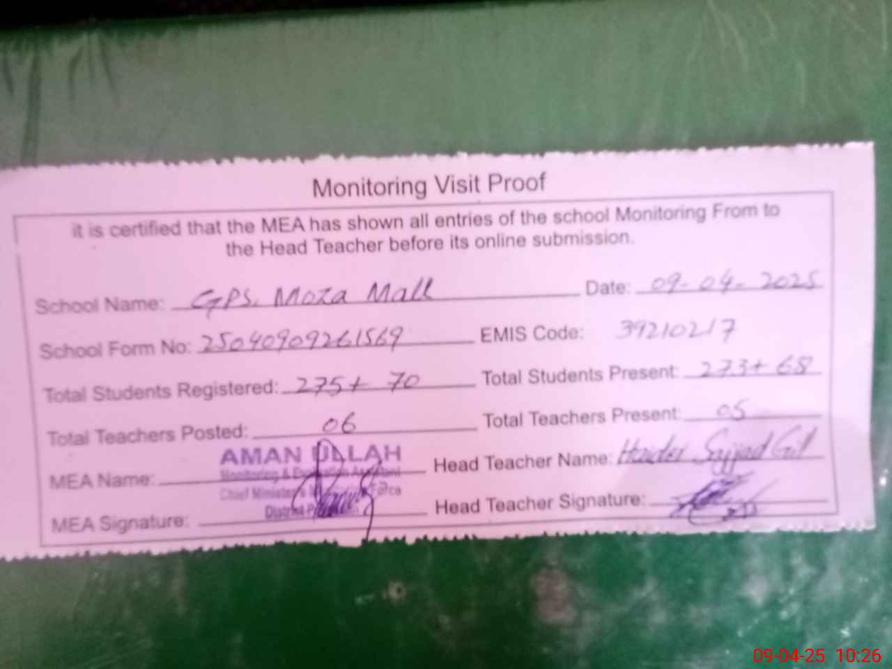 | EMIS Code: 39210217 | Name of School: GPS MOUZA MALL | |||