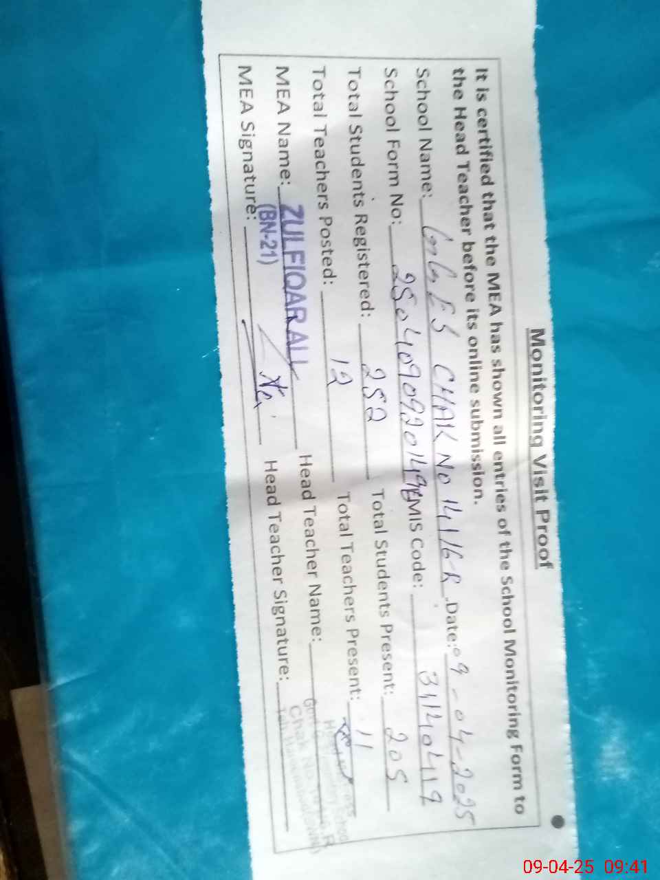 | Certified that this School was Inspected by the Undersigned MEA/DMO Today and the Information Stated Above is as Per Record. | |||||