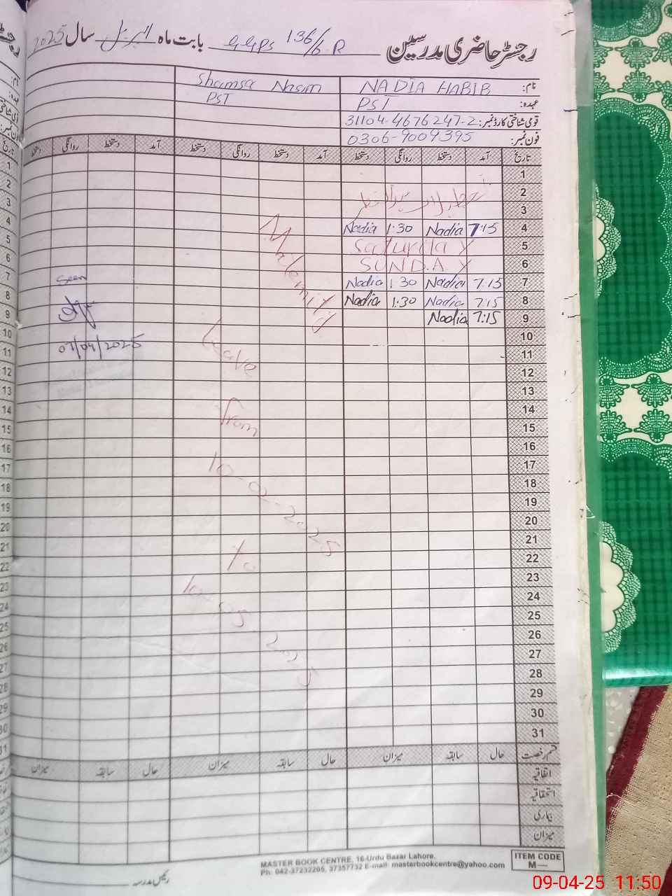 | Name: Sh**** Ak**** Designation: (School Headmaster's/Headmistress's) PST Phone/Cell Number: 03**** |