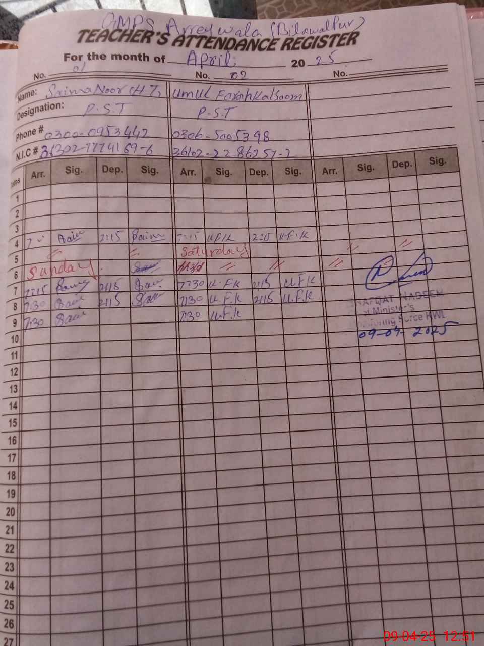 | Name: SA**** NO**** Designation: (School Headmaster's/Headmistress's) PST Phone/Cell Number: 03**** |