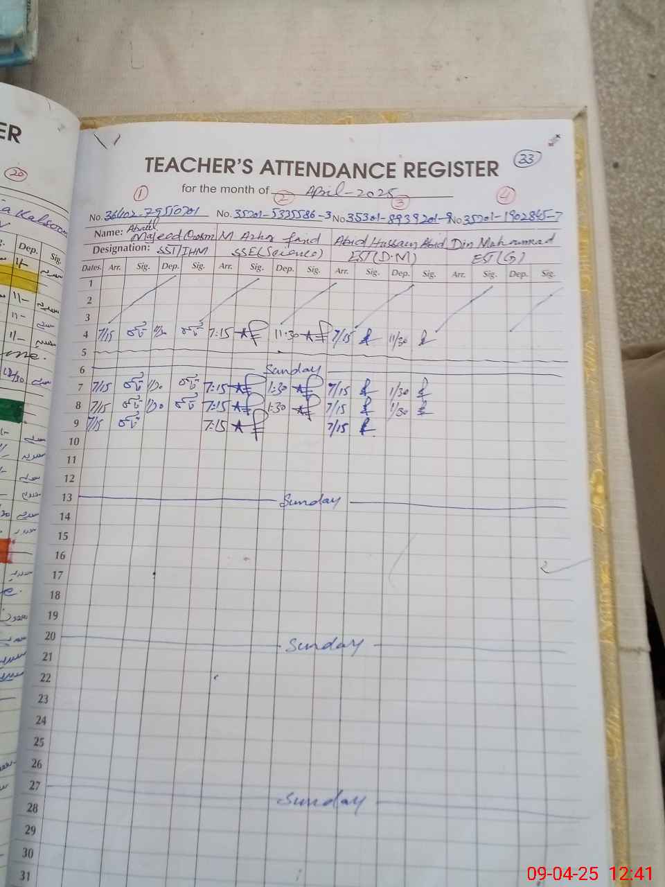 | Name: Ab**** Ma**** Designation: (School Headmaster's/Headmistress's) SST Phone/Cell Number: 03**** |