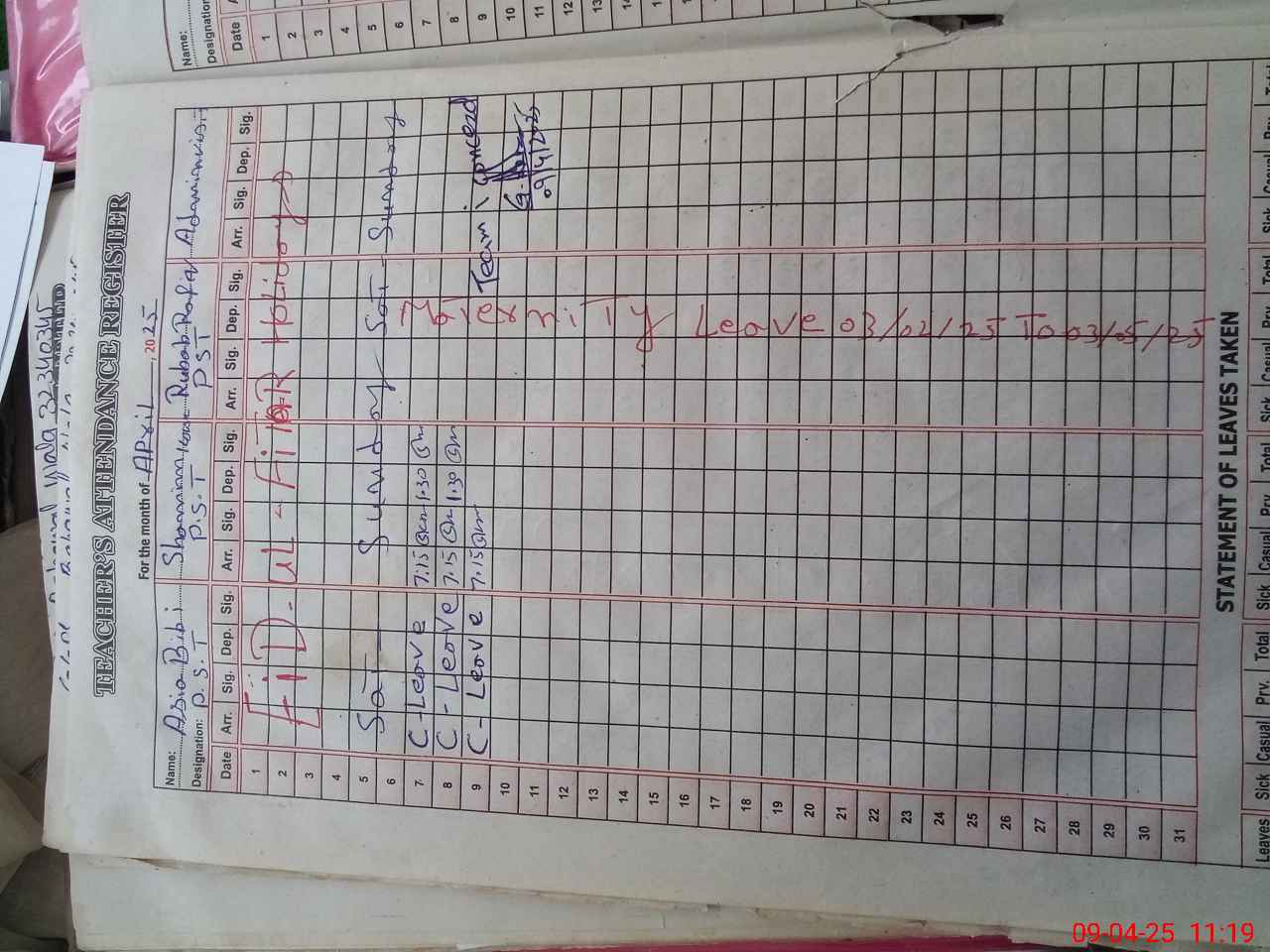| 32**** | Ru**** Ra**** | PST | Regular | 31 | 0 | 0 | 31 | 0 | 0 | 0 | 0 | 0 | Maternity |