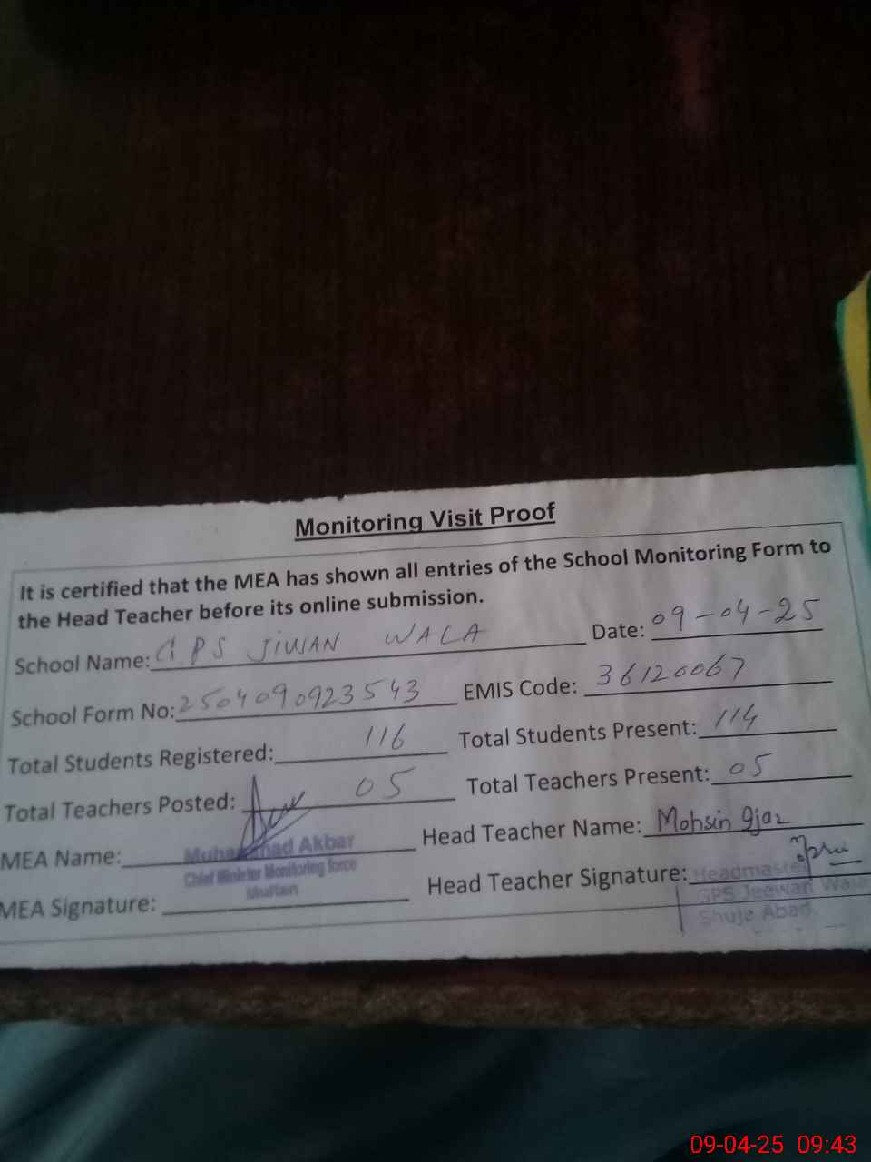 | EMIS Code: 36120067 | Name of School: GPS JIWAN WALA P/O SHUJABAD | |||