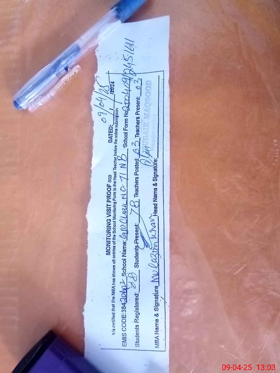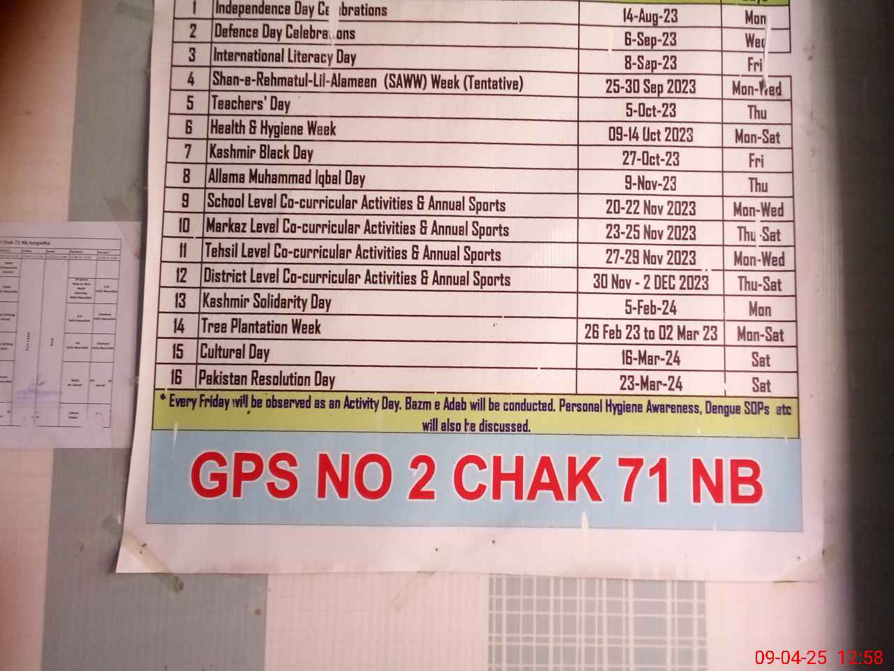 | EMIS Code: 38420422 | Name of School: GPS NO.2 CHAK NO.71 NB | |||