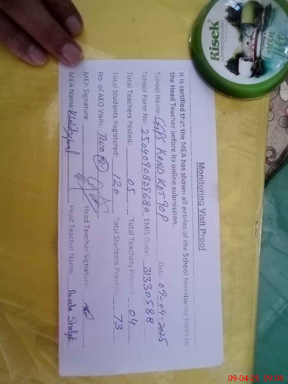 | EMIS Code: 31330588 | Name of School: GGPS KAND KOT 90/P | |||