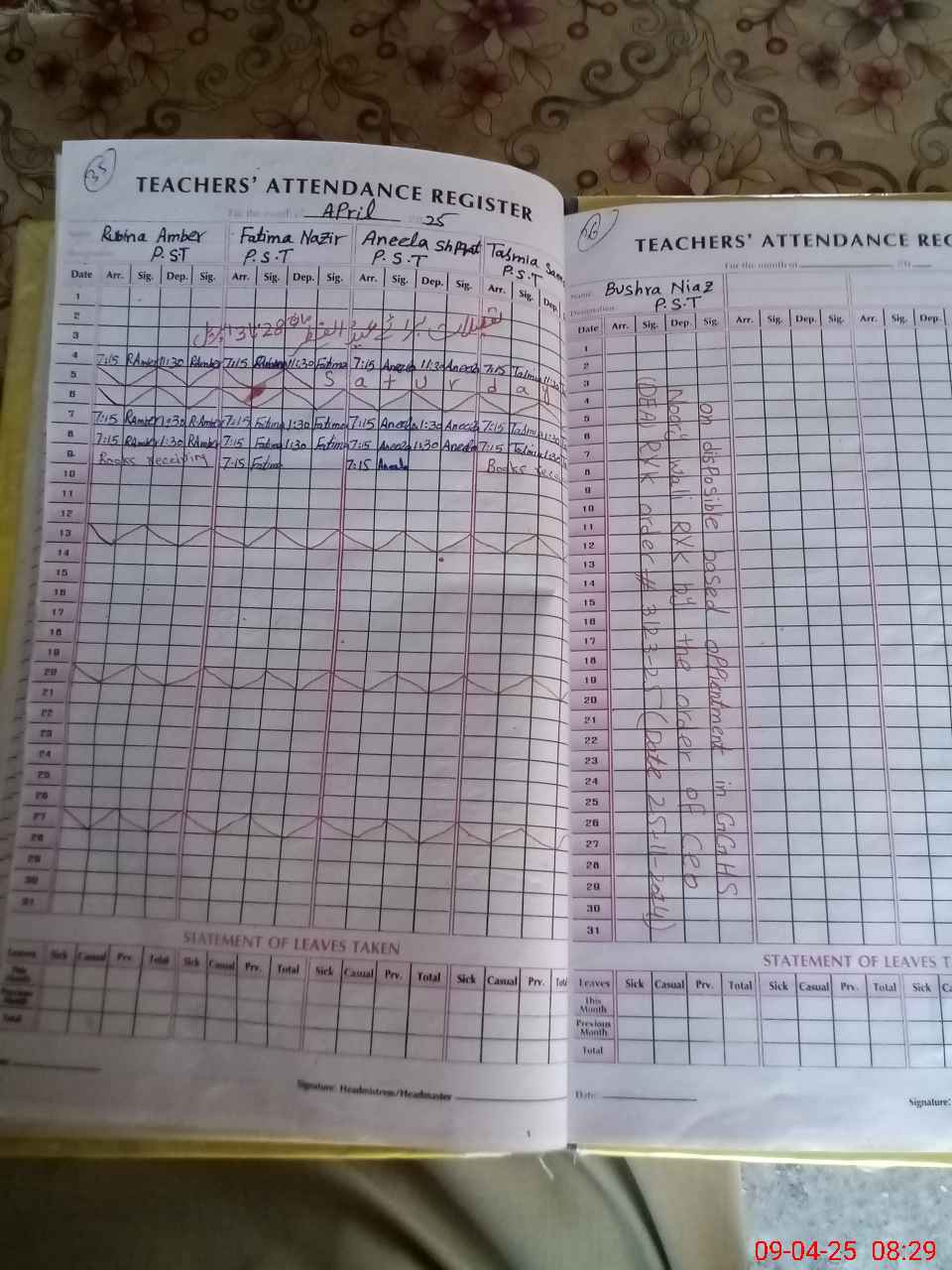 | Remarks (Use Separate Page if Required): Class verification is not updated on mea tab as per sis and teachers attendance not updated on sis today and two classes are sitting in veranda | |||||