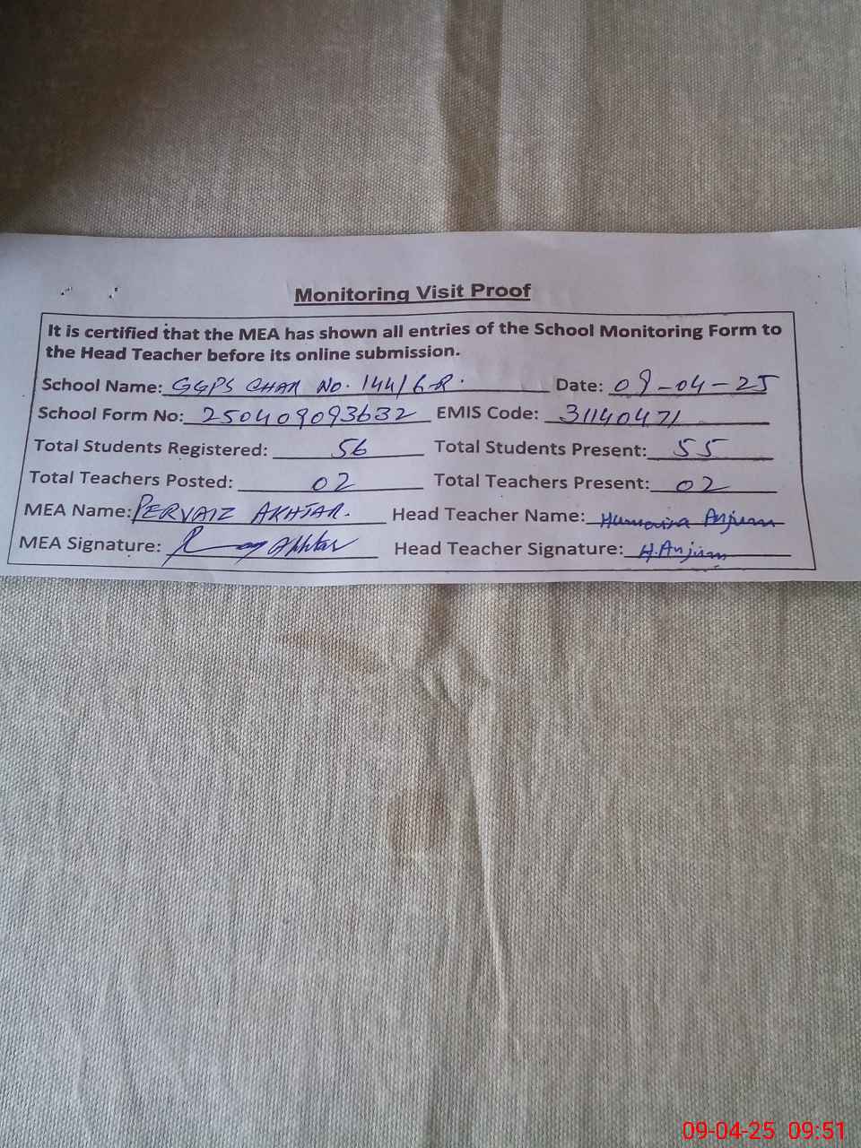 | EMIS Code: 31140471 | Name of School: GGPS CHAK NO.144/6-R | |||