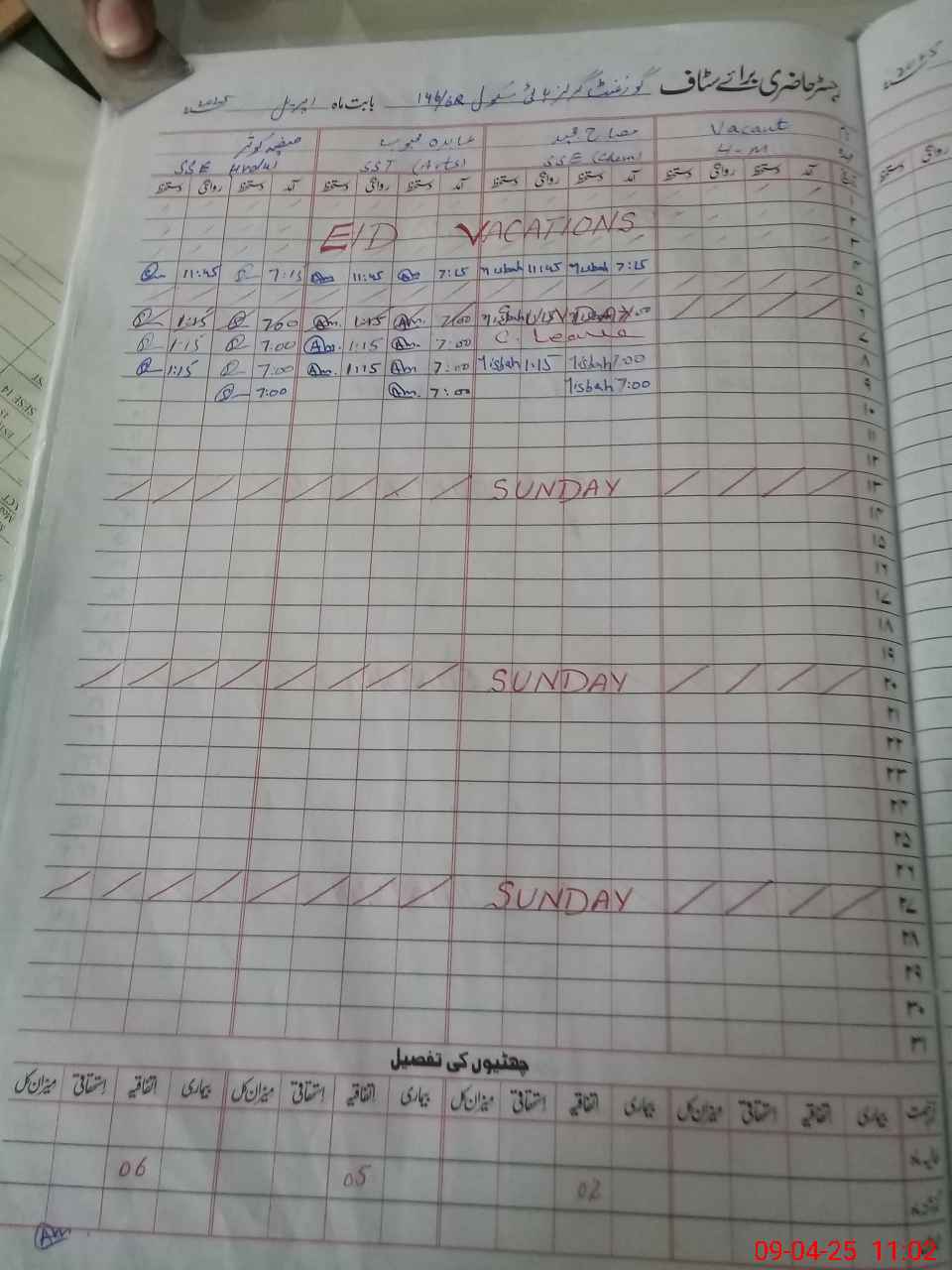 | CNIC | Full Name | Designation | R/C | Absence During Last Calender Month |