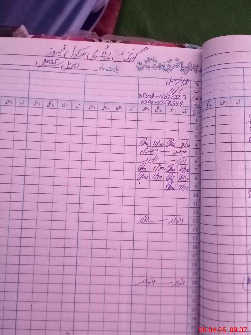 | Name: Mu**** Ak**** Al**** Designation: (School Headmaster's/Headmistress's) PST Phone/Cell Number: 03**** |