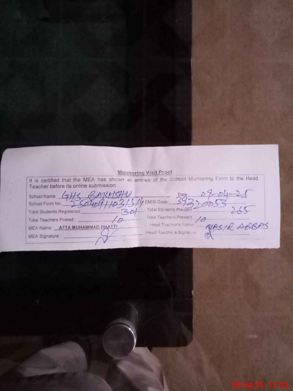| EMIS Code: 39320053 | Name of School: GHS BAKHSHU | |||