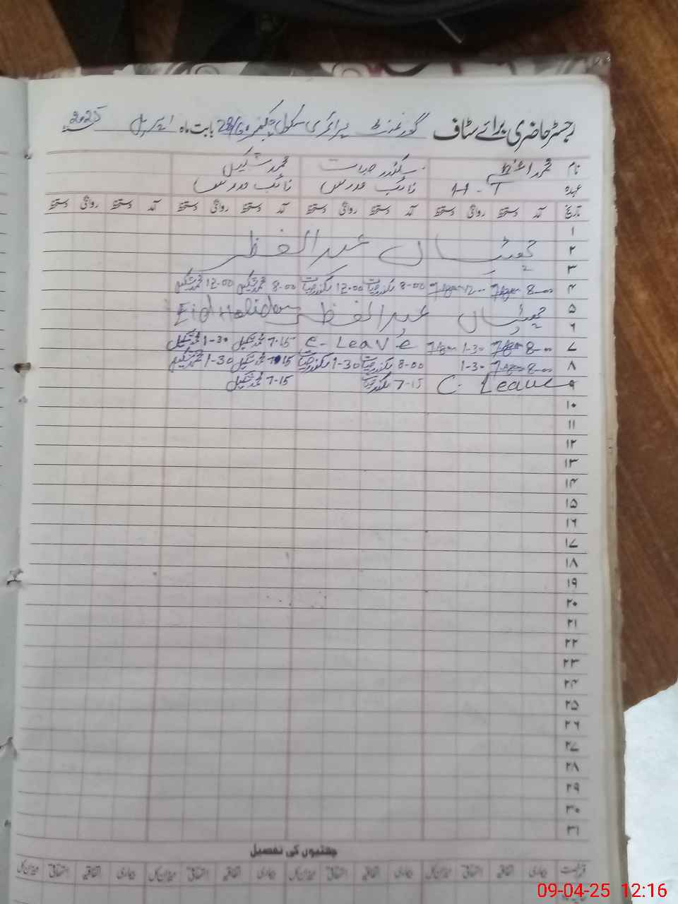 | CNIC | Full Name | Designation | R/C | Absence During Last Calender Month |