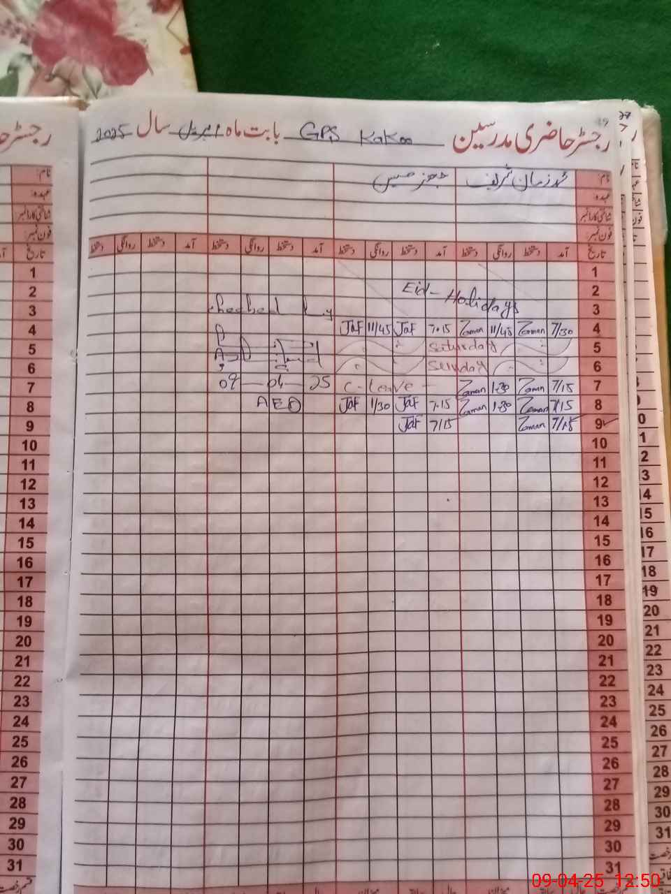 | CNIC | Full Name | Designation | R/C | Absence During Last Calender Month |