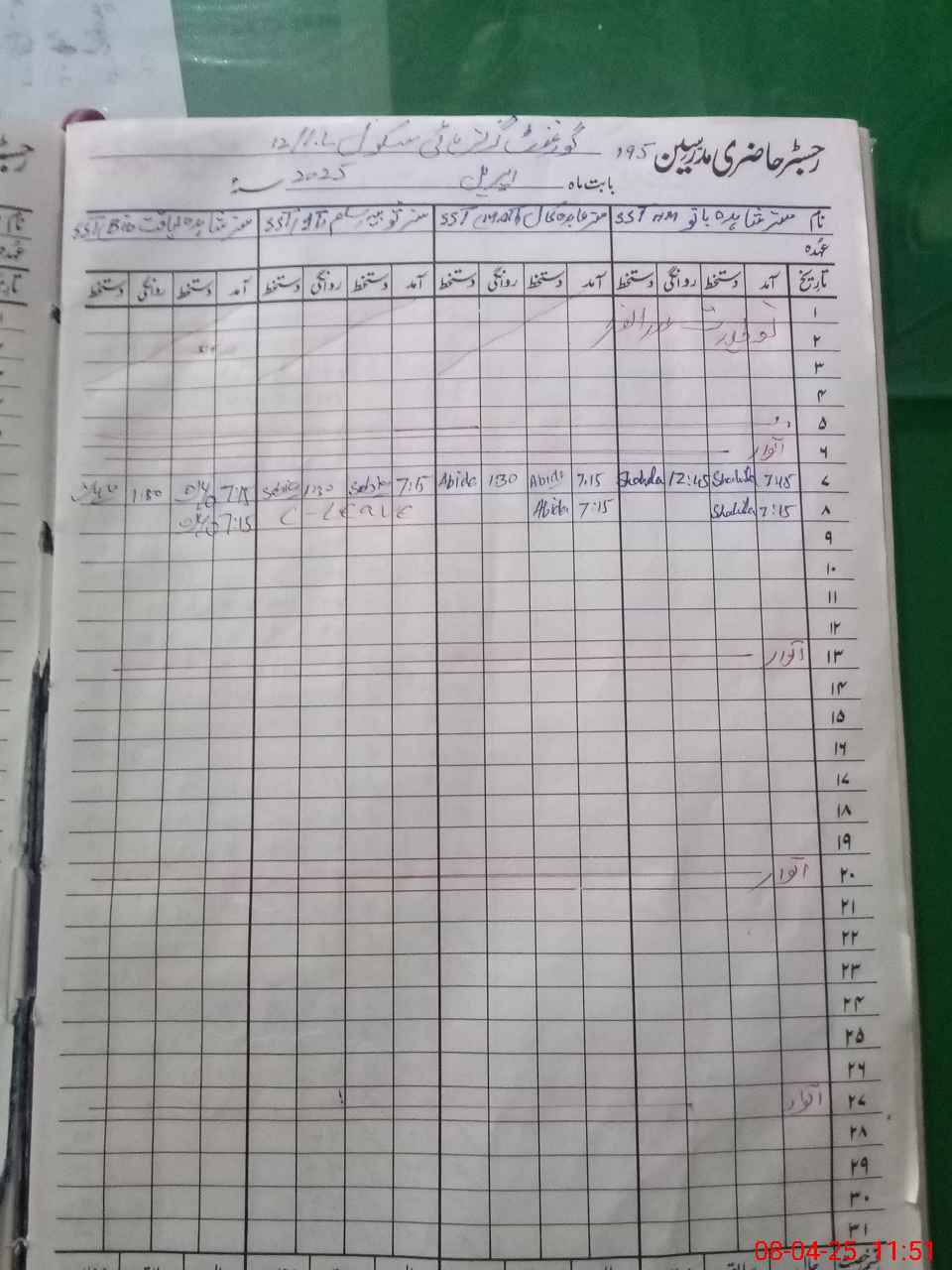 | CNIC | Full Name | Designation | R/C | Absence During Last Calender Month |