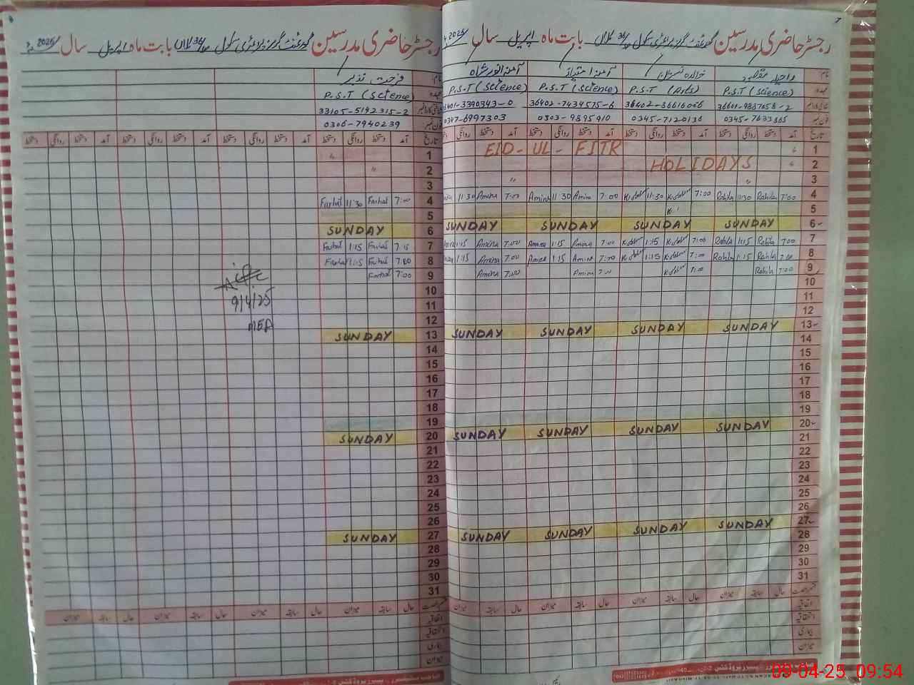 | Name: RA**** MA**** Designation: (School Headmaster's/Headmistress's) PST Phone/Cell Number: 03**** |