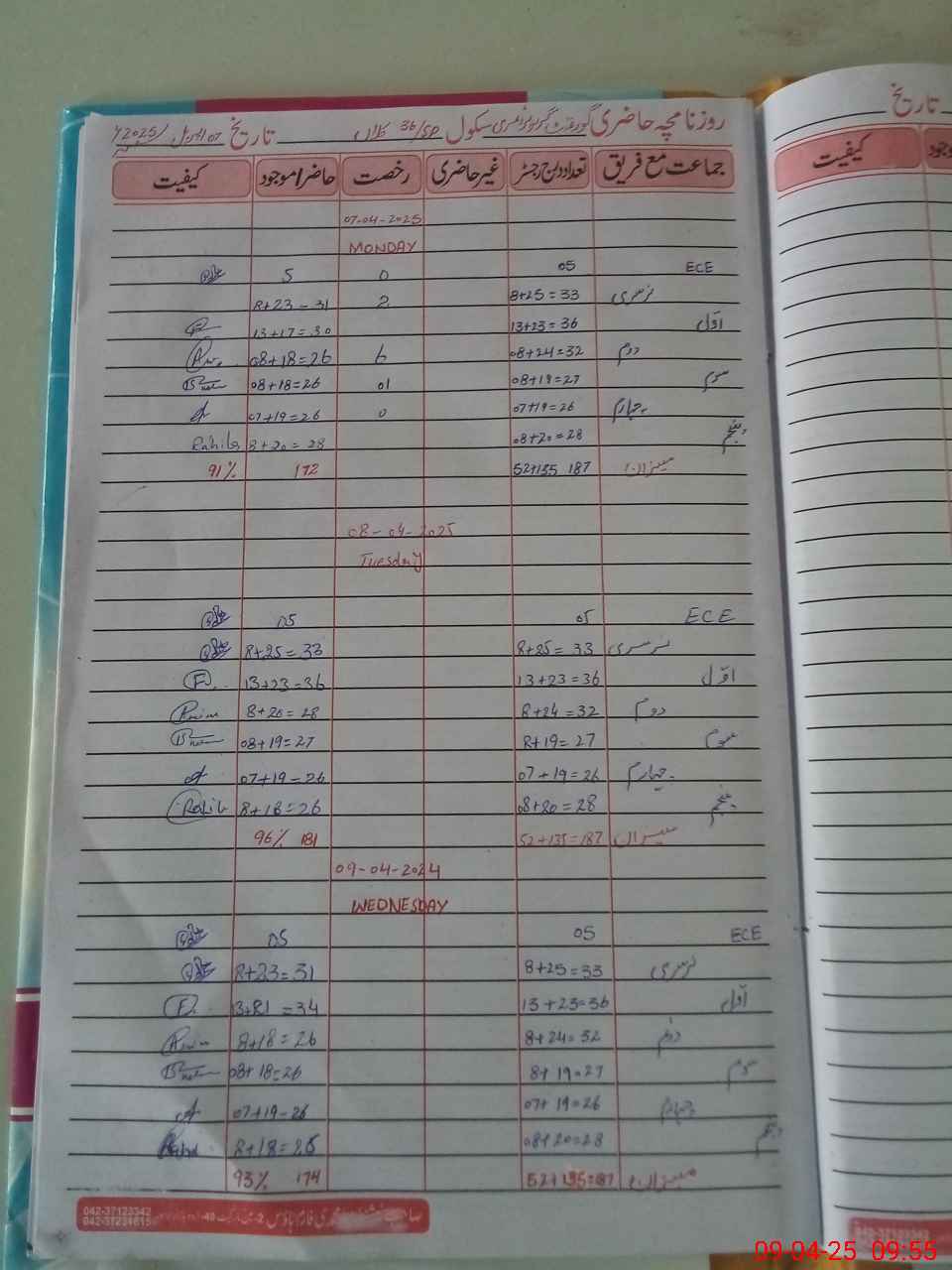 | Monitoring Date: 09-04-2025 | Start Time: 09-04-2025 08:51 AM | End Time: 09-04-2025 09:57 AM | Name of MEA: BA**** AL**** RA**** | |