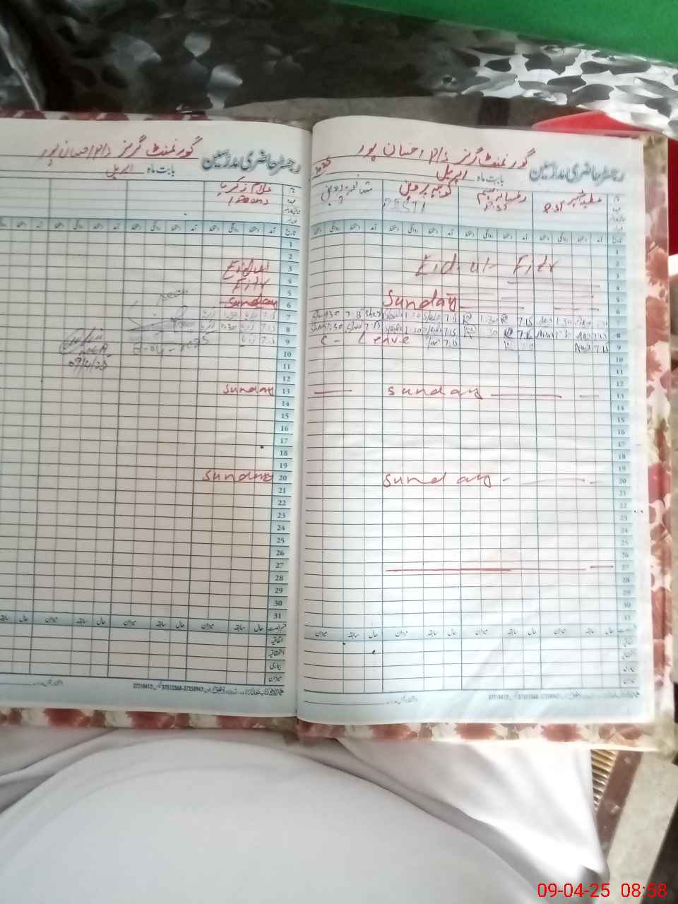 | CNIC | Full Name | Designation | R/C | Absence During Last Calender Month |