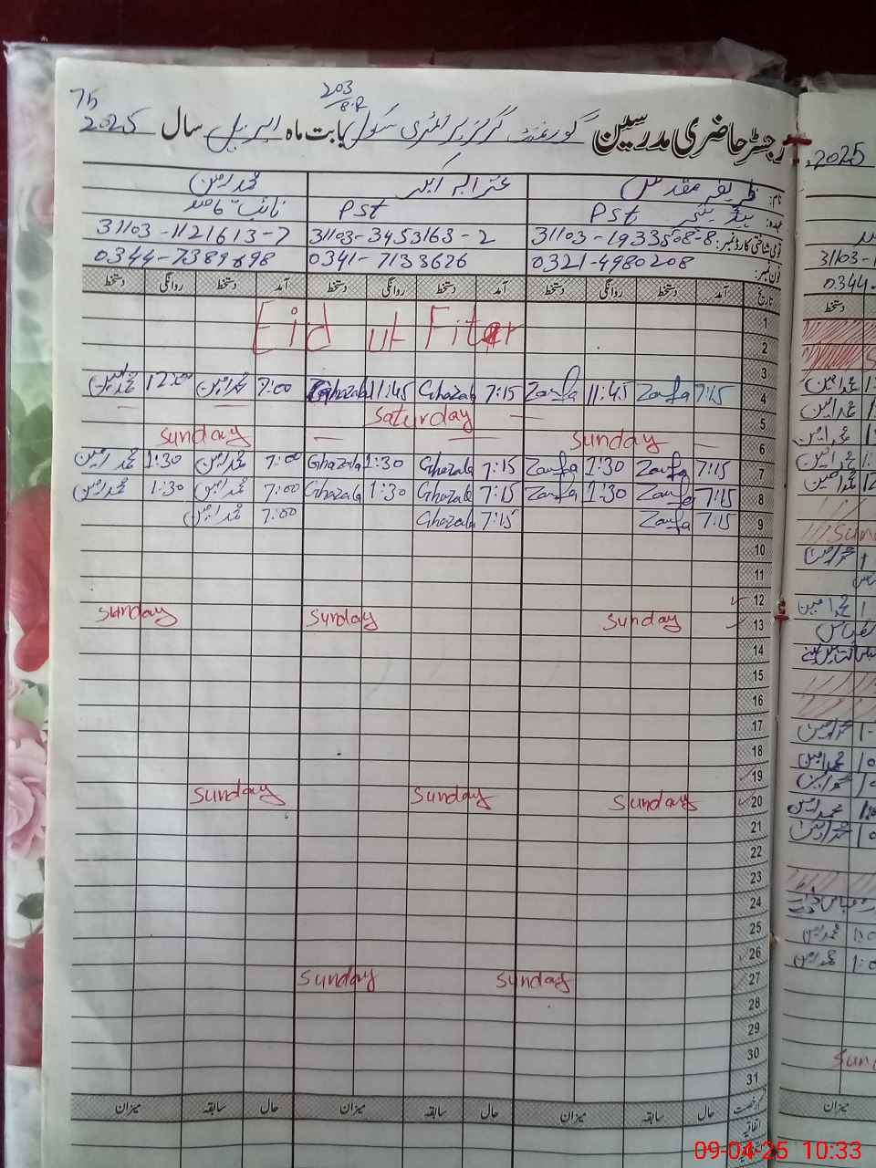| Name: Za**** Mu**** Designation: (School Headmaster's/Headmistress's) ESE Phone/Cell Number: 03**** |