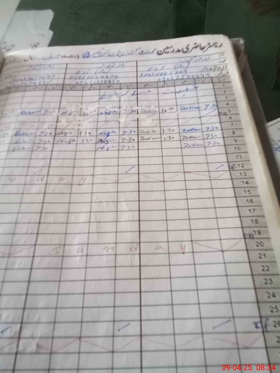 | Name: Za**** Ni**** Designation: (School Headmaster's/Headmistress's) EST Phone/Cell Number: 03**** |