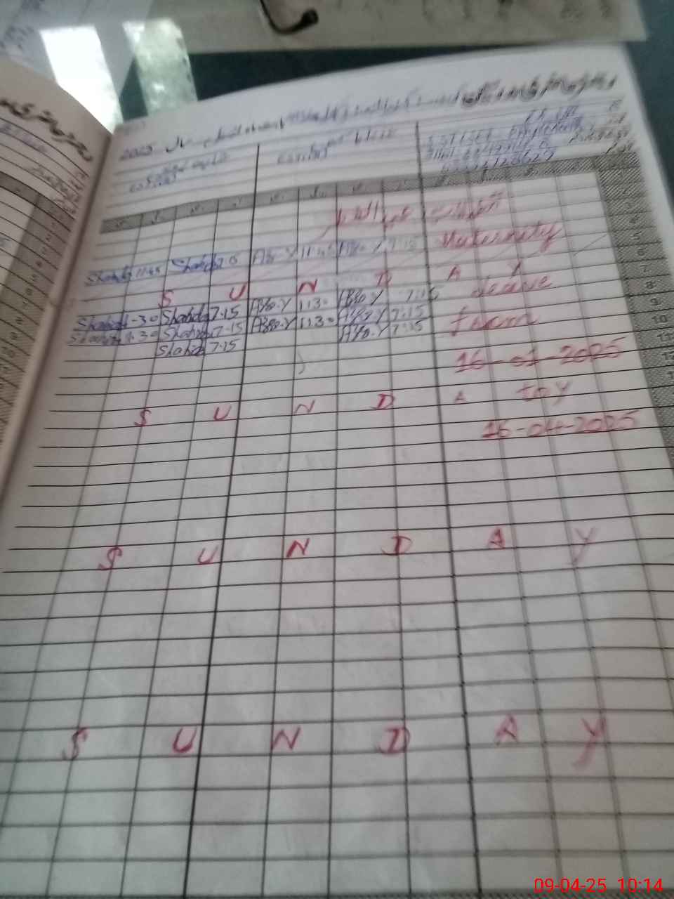 | Leave | Duty | Absent | Maternity | Medical | Ex- Pak |