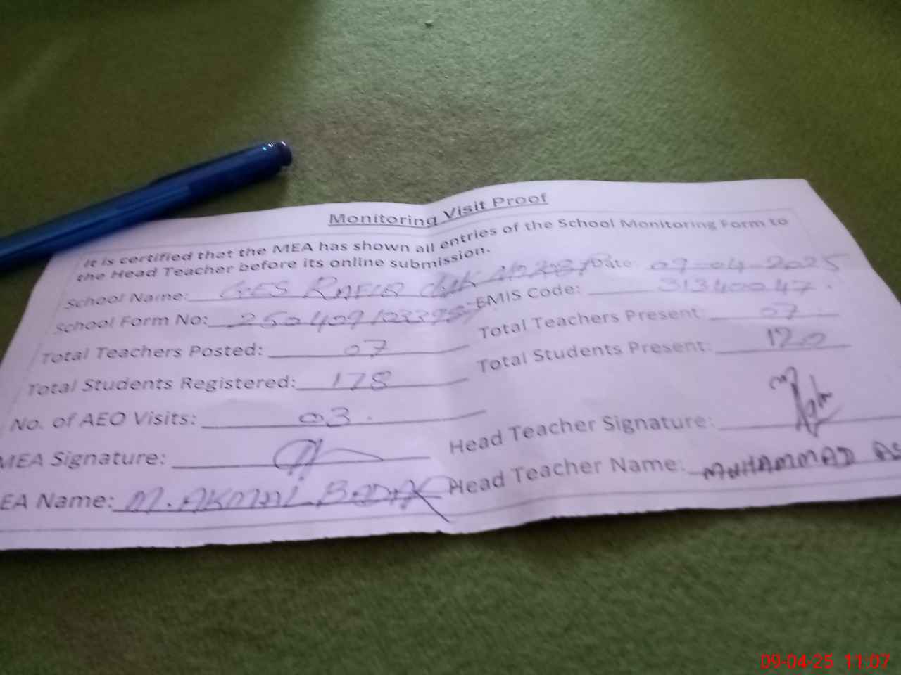 | EMIS Code: 31340047 | Name of School: GES RAFIQ CHAK NO 208/P | |||