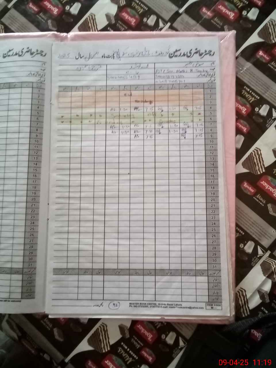 | CNIC | Full Name | Designation | R/C | Absence During Last Calender Month |