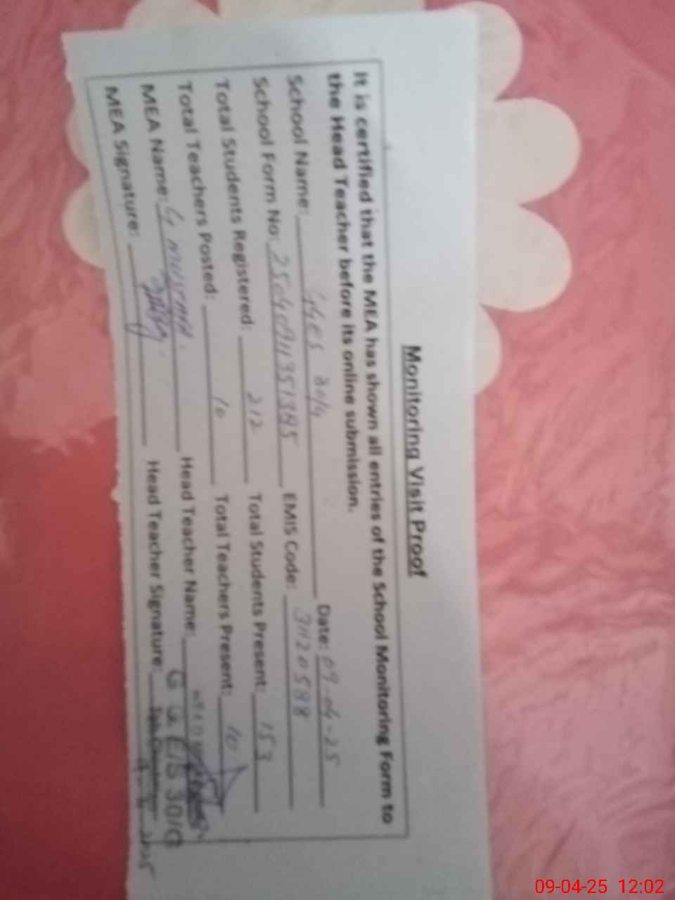 | Certified that this School was Inspected by the Undersigned MEA/DMO Today and the Information Stated Above is as Per Record. | |||||