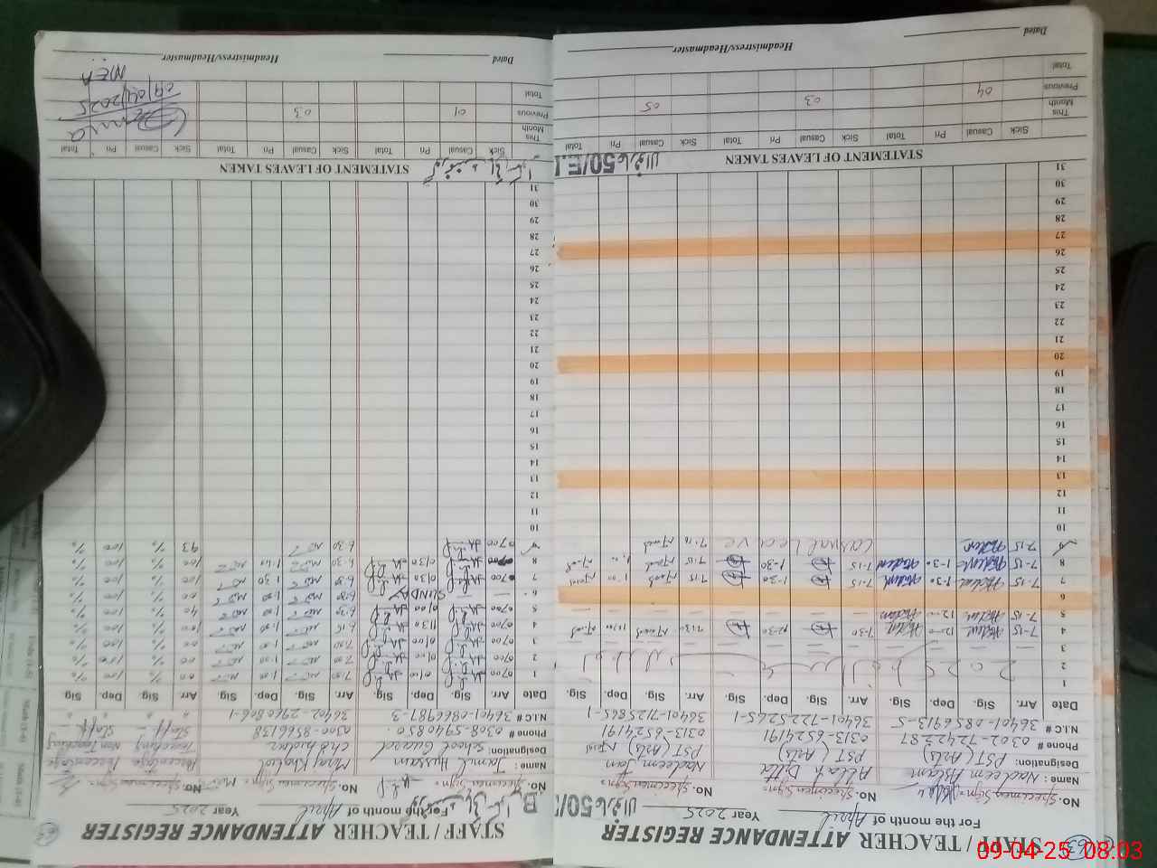 | 36**** | Ab**** Ra**** | 3 | 1 | 0 | 0 | 0 | 0 | 0 | 0 | 0 | 0 | 0 | Exam Duty |
