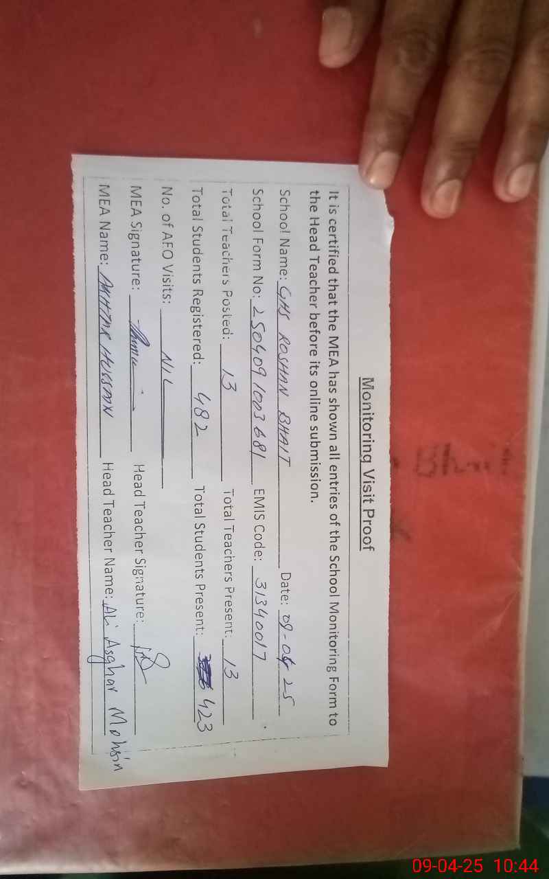 | EMIS Code: 31340017 | Name of School: GHS ROSHAN BHAIT | |||