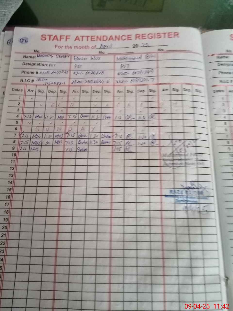 | Name: Mu**** Sh**** Designation: (School Headmaster's/Headmistress's) PST Phone/Cell Number: 03**** |