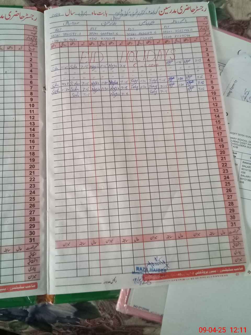 | Name: Si**** Ri**** Designation: (School Headmaster's/Headmistress's) PST Phone/Cell Number: 03**** |