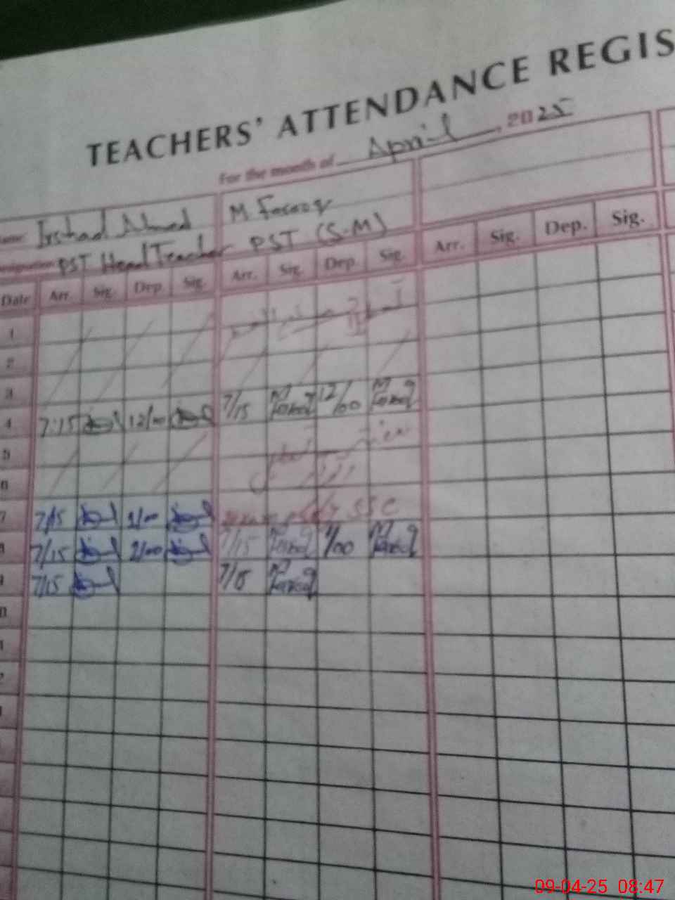 | Name: Ir**** Ah**** Designation: (School Headmaster's/Headmistress's) PST Phone/Cell Number: 03**** |