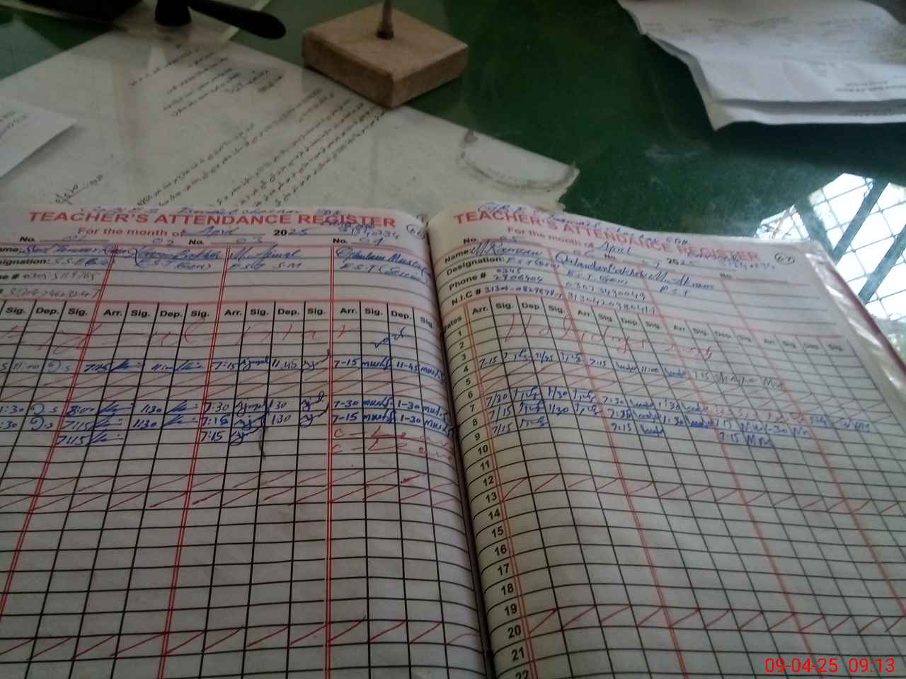 | CNIC | Full Name | Designation | R/C | Absence during last cal. month |