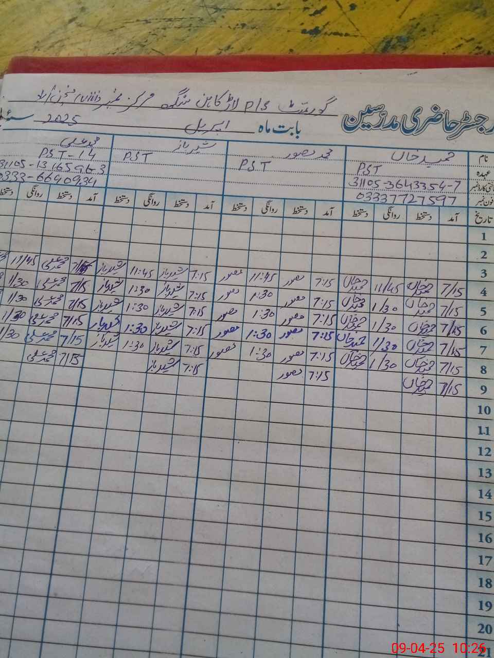 | Name: HA**** KH**** Designation: (School Headmaster's/Headmistress's) PST Phone/Cell Number: 03**** |