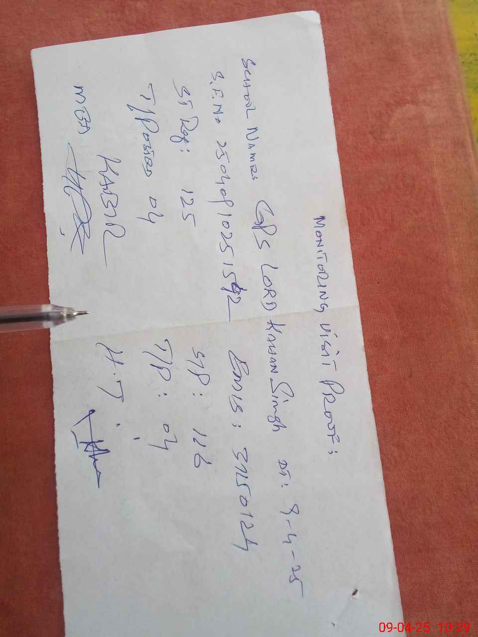 | EMIS Code: 31150124 | Name of School: GPS LARKAHAN SINGH | |||