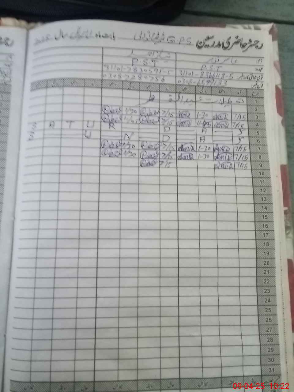 | CNIC | Full Name | Designation | R/C | Absence During Last Calender Month |